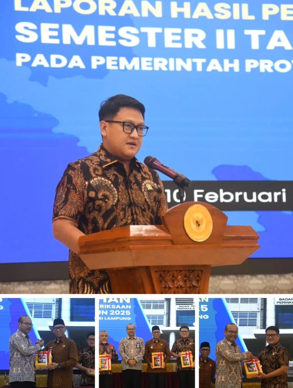 BANDAR LAMPUNG — Ketua DPRD Provinsi Lampung A. Giri Akbar, SE., MBA, menghadiri sekaligus memberikan sambutan dalam Acara Penyerahan Laporan Hasil Pemeriksaan (LHP) Semester II Tahun 2025 oleh Badan Pemeriksa Keuangan Republik Indonesia (BPK RI) Perwakilan Provinsi Lampung, yang berlangsung di Kantor BPK RI Perwakilan Provinsi Lampung, Selasa (10 Februari 2026).