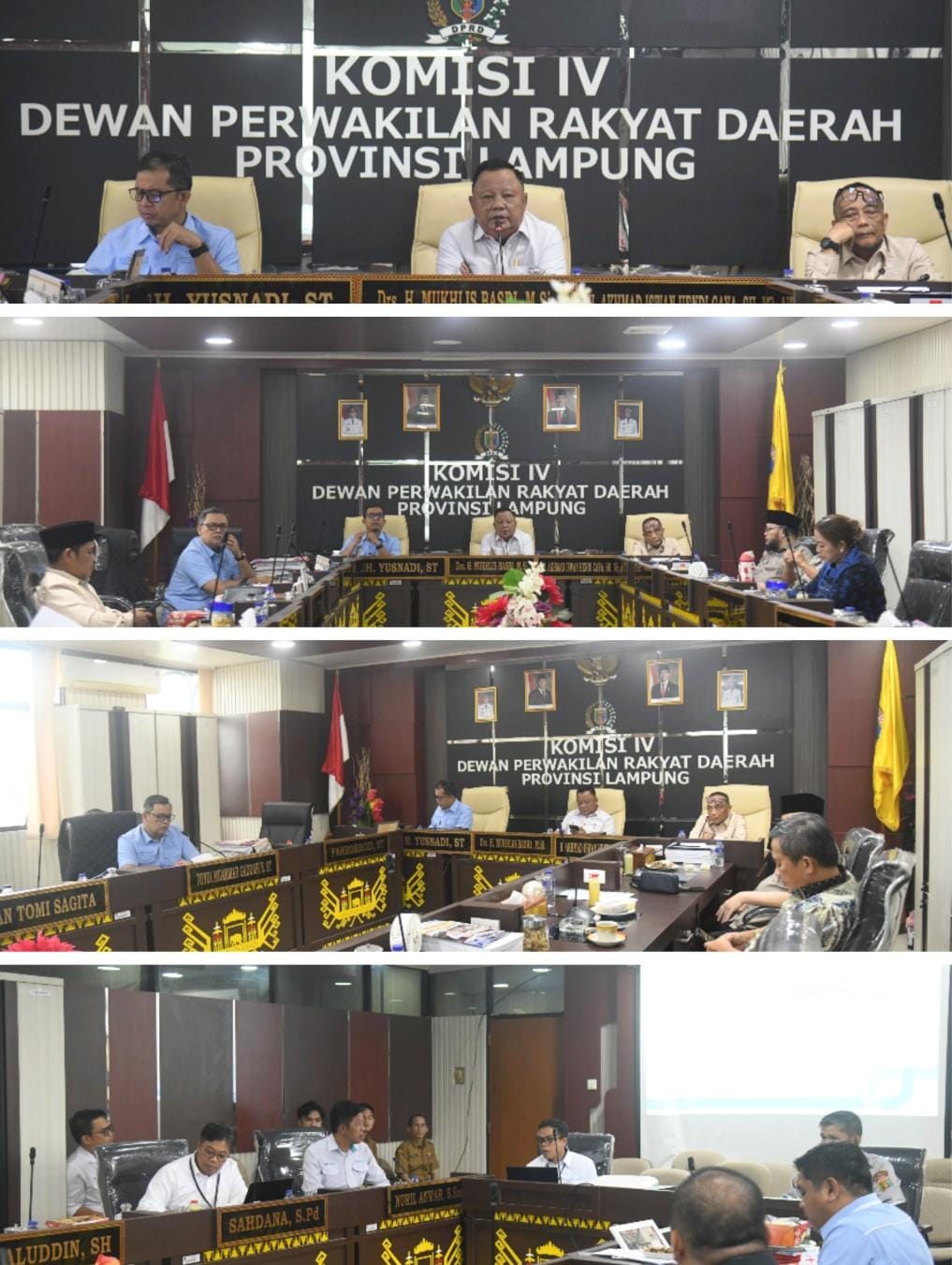 Rapat dipimpin oleh Ketua Komisi IV DPRD Provinsi Lampung, Drs. H. Mukhlis Basri, M.Si, didampingi Wakil Ketua H. Akhmad Iswan H. Caya, S.H., M.H., serta Sekretaris H. Yusnadi, S.T. Turut hadir anggota Komisi IV DPRD Provinsi Lampung, yakni Ni Ketut Dewi Nadi, S.T., Tondi MG Nasution, S.T., Najiullah Syarif, S.T., M.T., Budi Hadi Yunanto, M.Pd., H. Amaluddin, S.H., H.M. Hazizi, S.E., serta Muhammad Ghofur, S.Si.