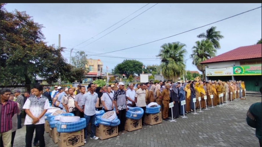 METRO — Walikota Metro, Bambang Iman Santoso, menyerahkan Bantuan Alsintan untuk Kelompok Tani, Hewan Ternak untuk Kelompok Ternak, dan Sarana Produksi Perikanan untuk Kelompok Pembudidaya Ikan. Acara ini berlangsung di Halaman Kantor Dinas Ketahanan Pangan, Pertanian, dan Perikanan (DKP3) Kota Metro, Selasa (25/11/2025).